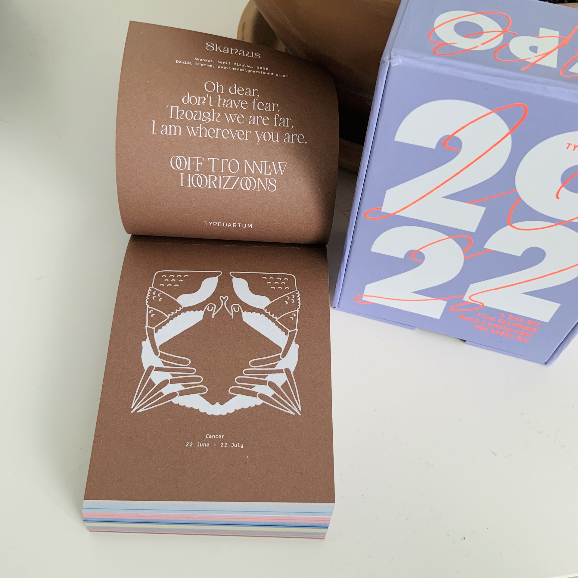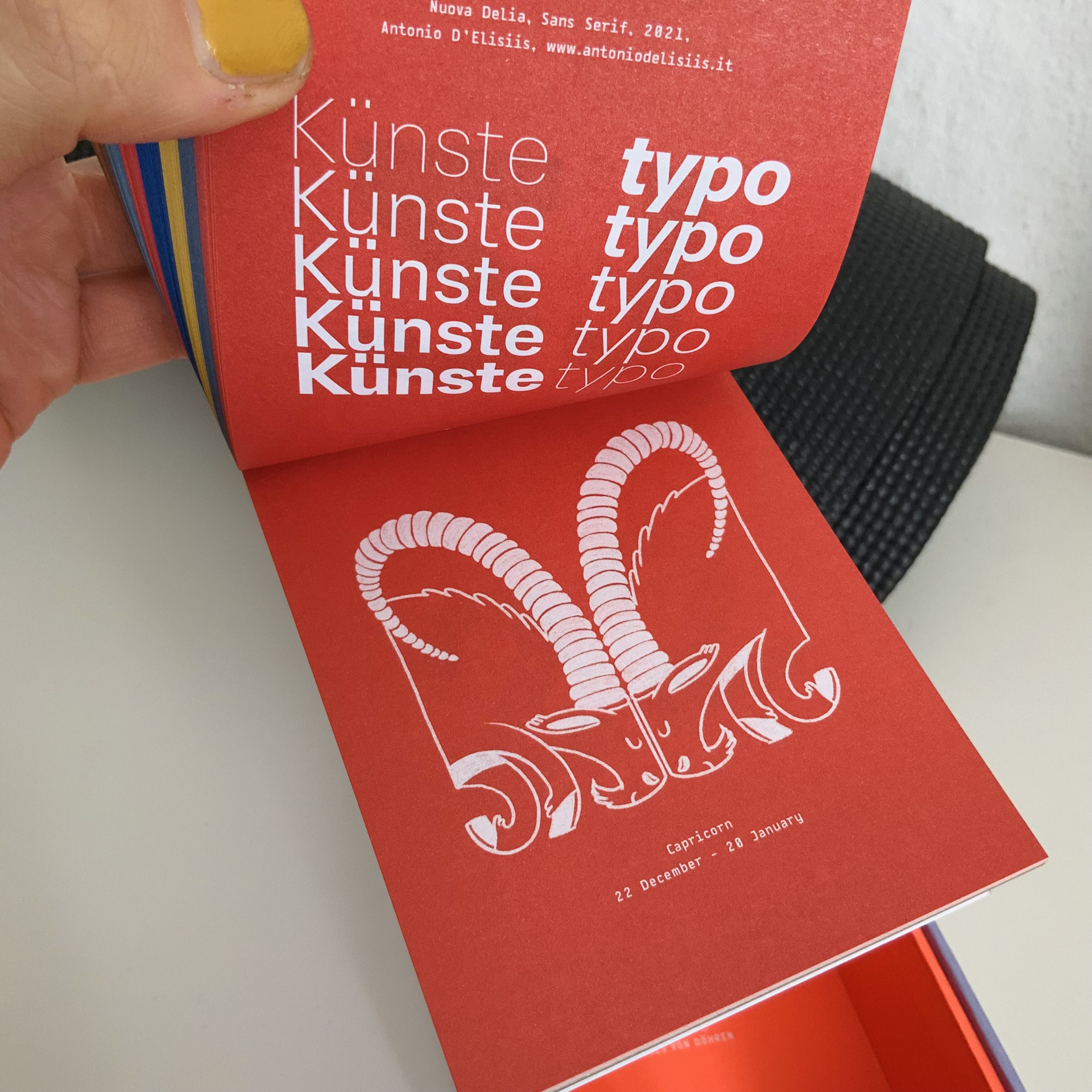 Verlag Hermann Schmidt, 2021Zwölf digitale Illustrationen zum Kalender »Typodarium 2022« mit Darstellungen der verschiedenen Sternzeichen.